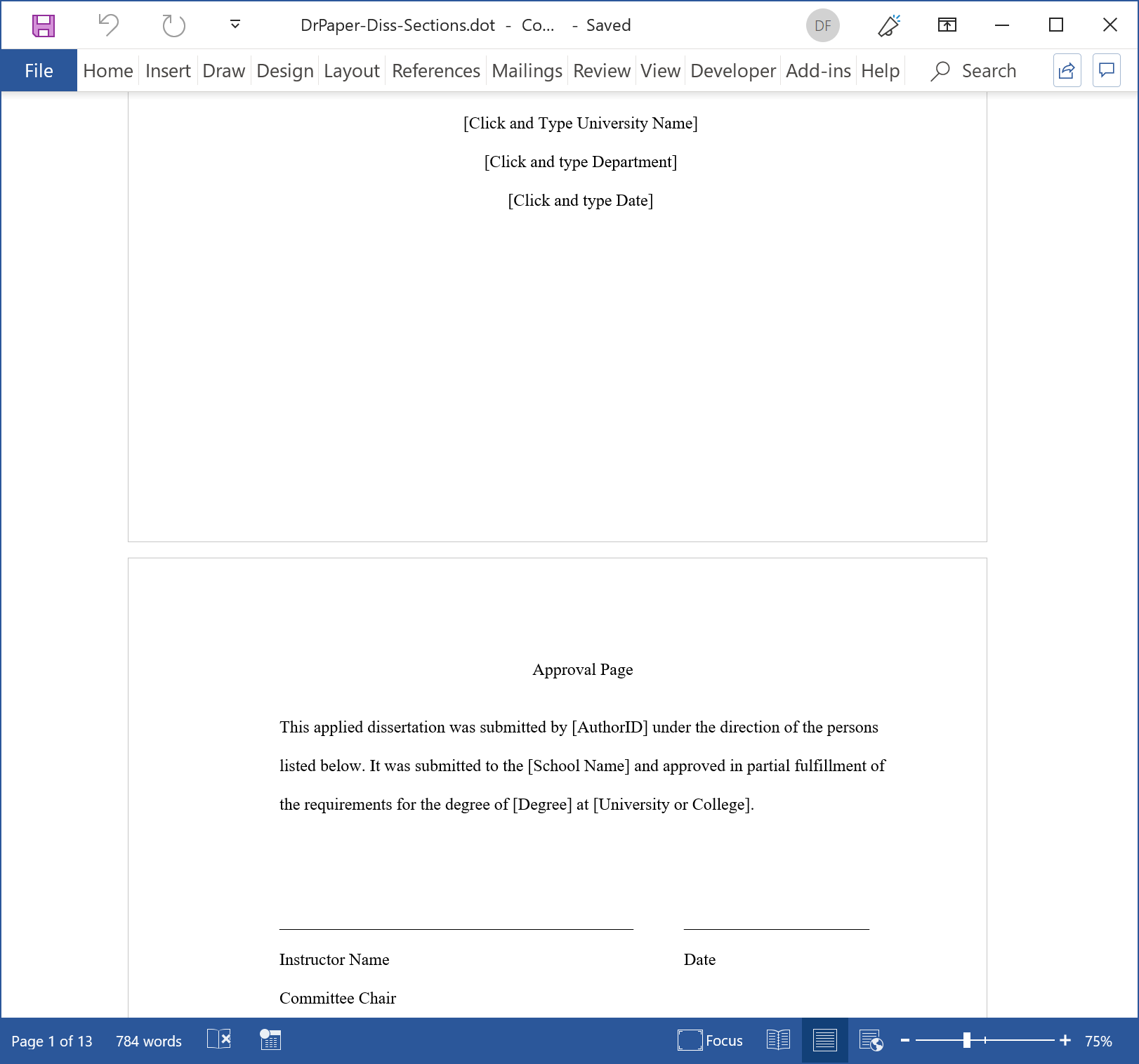2. Scroll down and choose Template: Advanced - APA Dissertation,