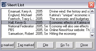 ![]() To include the rest of your intext citations, just go to the entry for the work you want to cite, put the cursor in the right spot, and click Insert again. If you have many entries in your CiteWrite datafile, you can click Format, Find Records in Short List to view a list of the records in the datafile. Double click on any of the entries to go to that record.