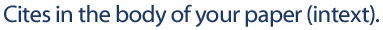 About intext cites Intext citations, for APA Style, are placed in the body of your paper; the citation includes the author's last name, the year of publication (Rawlings, 2006), and, sometimes, if the material is a direct quotation, a specific page reference (Brown & West, 2007, p. 234).